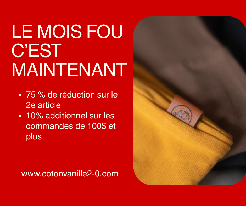 Suivez notre page Tik-Tok @cotonvanille pour accéder des promotions exclusives